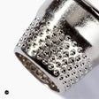 Il est fabriqué en acier plaqué argent très résistant, ce qui le rend durable et résistant à l'usure. Le dé à coudre mesure 16 mm et comporte une lèvre sur le bord inférieur qui empêche l'aiguille de glisser et offre une protection supplémentaire pendant la couture, similaire aux dés à coudre ordinaires.