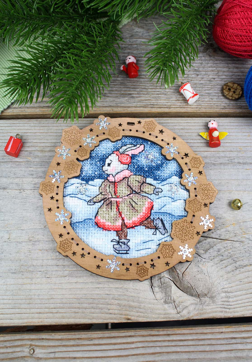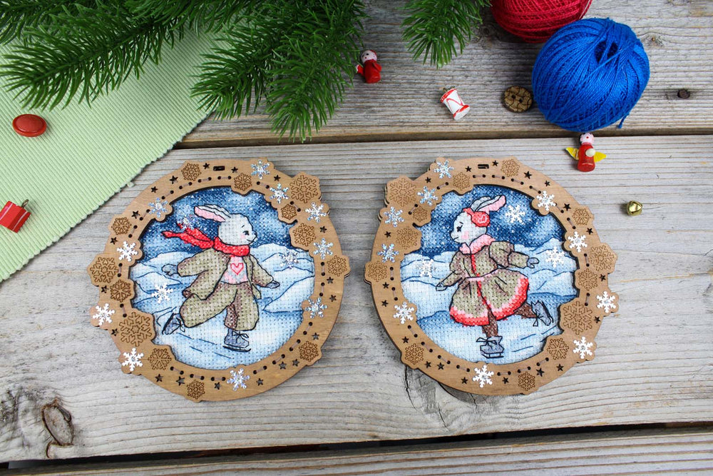 El kit de bordado MP Studia SO-135 – Miniatura “En el río helado” representa una escena invernal llena de ternura y movimiento. Una pequeña conejita patina sobre el hielo con un abrigo cálido y orejeras rojas, rodeada de copos de nieve brillantes que realzan la atmósfera mágica del invierno. El bordado se enmarca en una base de madera grabada con copos de nieve y decorada con cuentas Preciosa y lentejuelas que aportan un toque de luz y encanto.