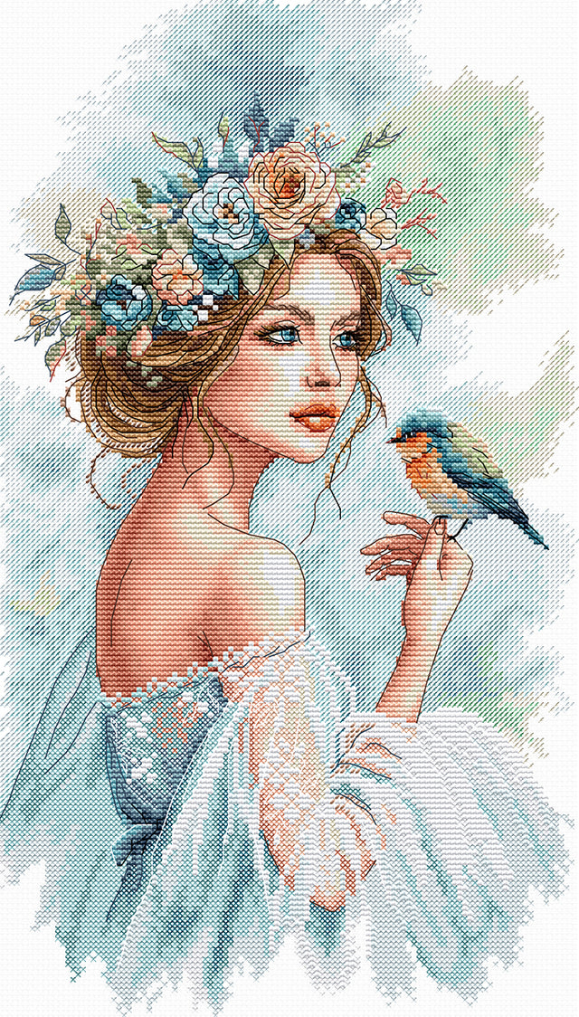 Brodez une scène pleine de délicatesse et de romantisme avec le kit de point de croix « La Dame du Jardin » , créé exclusivement par AVA Stitch. Ce design raffiné capture la beauté sereine d'une jeune femme entourée de fleurs printanières, accompagnée d'un petit oiseau, transmettant la paix et l'harmonie dans chaque point.