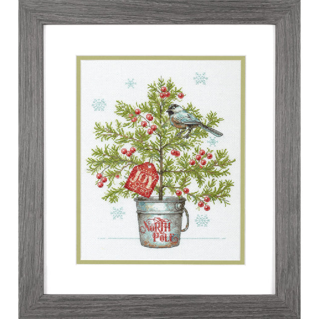 Ce charmant motif au point de croix compté de Dimensions est parfait pour ajouter une touche festive à votre décoration de Noël. Il présente un arbre à feuilles persistantes décoré de baies et un oiseau perché, évoquant l'essence de la saison.