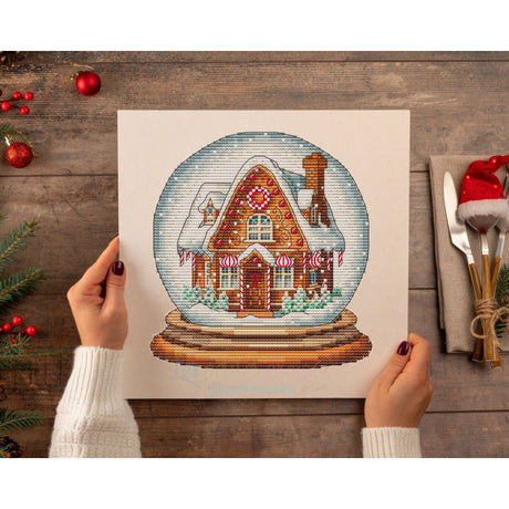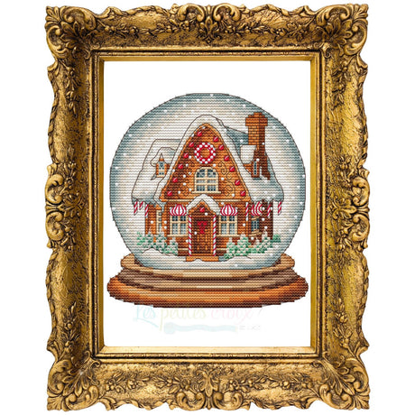 Maison en pain d'épices dans une boule à neige - Grille point de croix - Les Petites Croix de Lucie