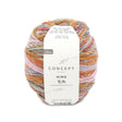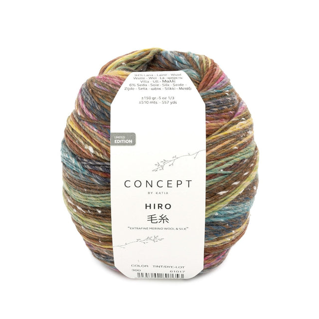 Katia Hiro, qui fait partie de la collection Concept by Katia, est composée de 94% de Mérinos Extrafine et de 6% de soie. Cette combinaison unique assure une brillance délicate, une texture riche et une douceur exceptionnelle à chaque point. Découvrez la beauté de ces fibres naturelles pendant que vous tricotez vos pièces les plus élégantes pour l'automne et l'hiver. Ses couleurs marbrées et ses petites taches blanches offrent des imprimés rayés uniques.