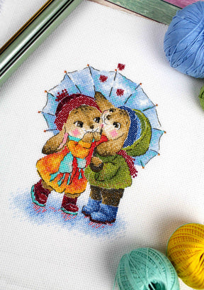 Le kit de point de croix SM-778 « Under the Umbrella » de MP Studia présente deux adorables lapins partageant un moment spécial sous un parapluie un jour de pluie. Ce motif est parfait pour ceux qui recherchent un projet mignon et facile à broder. Le kit comprend :