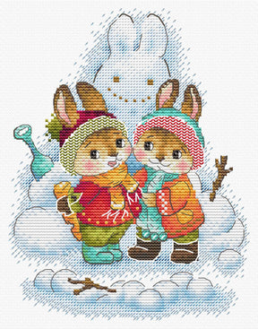Le kit de point de croix SM-779 « They Couldn't Resist » de MP Studia montre deux adorables lapins profitant d'une journée d'hiver et construisant un bonhomme de neige. Ce design charmant est parfait pour ceux qui aiment les projets pleins de couleurs et de joie. Le kit comprend :