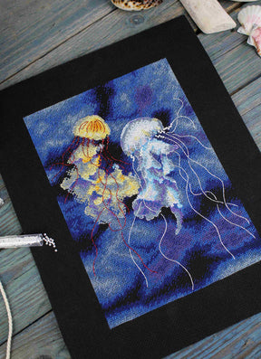 Explorez la beauté hypnotique de l'océan avec le spectaculaire kit de broderie au point de croix « Magie sous-marine » de MP Studia. Un motif vibrant représentant des méduses flottant dans des teintes bleu profond, agrémenté de fils métalliques et de perles pour un effet tridimensionnel véritablement magique.
