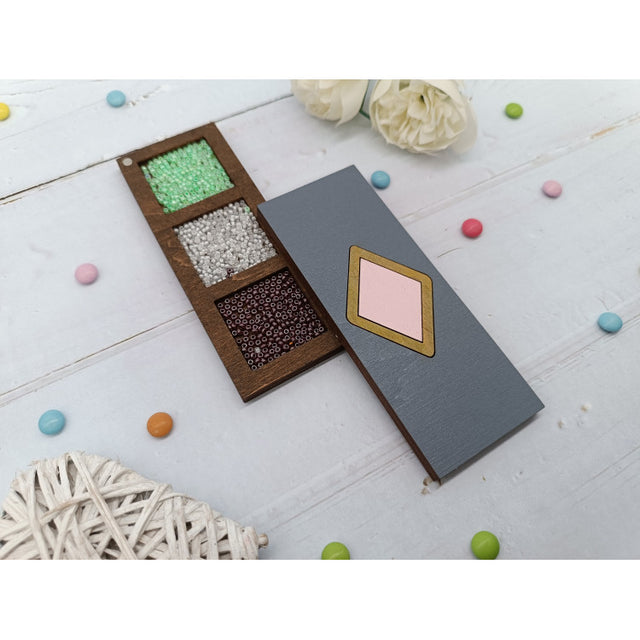 Boîte à perles en bois. Losange rose KF027/107