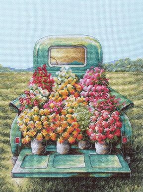 Embellissez votre espace avec une touche vintage et florale avec le kit de point de croix « Fleurs à vendre » de Dimensions. Ce design captivant présente un camion classique rempli de fleurs en pot colorées, une image qui évoque le charme des marchés en plein air et des journées ensoleillées de printemps.