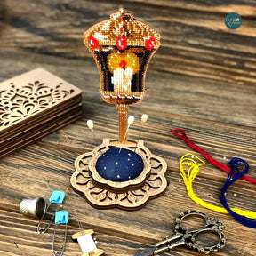 FLK-288 Coussin à épingles - Lanterne - Kit avec perles - Bois