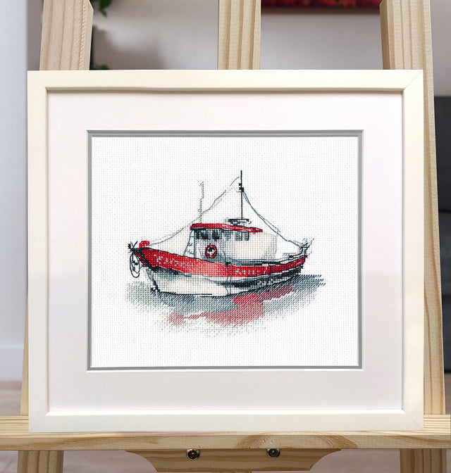 Ce charmant kit de point de croix capture l'essence d'un navire avec des détails fins et un design minimaliste, parfait pour les amoureux de la mer.