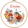 Le kit de point de croix Vervaco - Coccinelle est un charmant projet de broderie représentant une coccinelle entourée de fleurs et de champignons, idéal pour personnaliser avec des noms et des dates, parfait pour décorer une chambre d'enfant ou comme cadeau personnalisé.