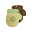 Cet organiseur est fabriqué en bois et a la forme d'une moufle, un élément typique des thèmes du froid et de l'hiver. Il est peint d'une couleur jaune tendre avec un revers vert à l'ouverture et présente un motif de flocon de neige au centre, ajoutant un charme hivernal.