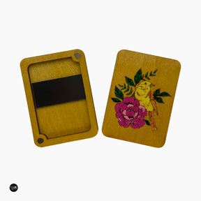 Étui à aiguilles en bois. Oiseau - Wizardi KF056/4