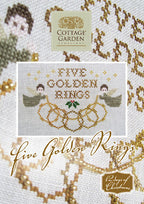 Anges et anneaux dorés dans ce motif de point de croix de Cottage Garden Samplings. Le motif a été brodé sur du lin 32 fils, mais vous pouvez utiliser n’importe quel tissu de votre choix !