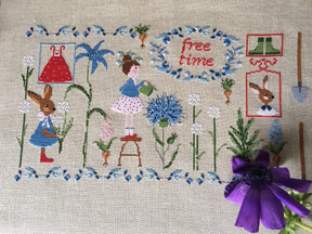 "Free Time" est un schéma de point de croix compté avec un motif floral printanier.