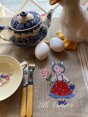 "Gertrude" est un schéma de point de croix aux couleurs comptées, idéal pour décorer des sets de table et des serviettes décoratives pour la maison.
