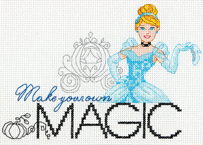 La belle Cendrillon apparaît dans Make Your Own Magic by Dimensions. Cette conception de point de croix compté ravira à coup sûr n'importe quelle petite fille. Taille finie : 7" x 5". © Disneywww.DisneyPrincess.com. Le kit de point de croix compté contient du fil présélectionné, du fil Aida blanc 14 points, une aiguille et des instructions simples.