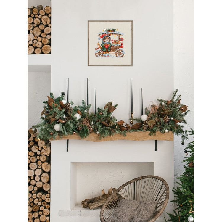 Apportez une touche festive et charmante à votre collection avec le kit de point de croix KLART 8-578 – Chariot de bonbons . Le motif représente un adorable chaton de Noël coiffé d'un bonnet et d'une écharpe rouges, debout devant un chariot rempli de friandises, de gâteaux et de cannes de Noël. Une scène joyeuse qui capture toute la magie de Noël.