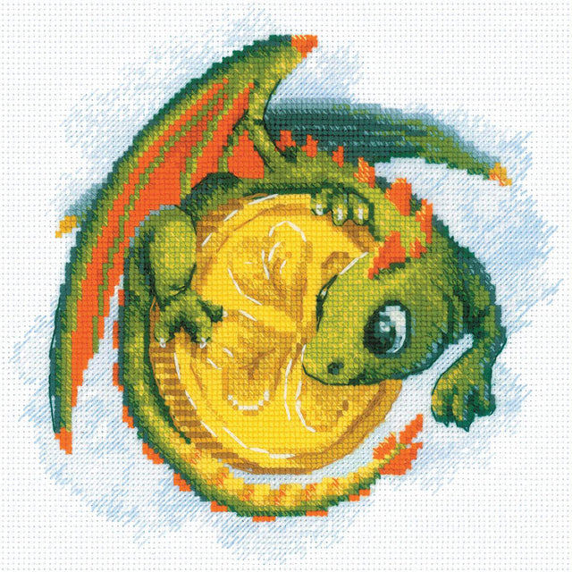 Article #2142 – Ce charmant kit de point de croix s'appelle « Lucky Coin », offrant une représentation colorée et attachante qui inspire fortune et joie.