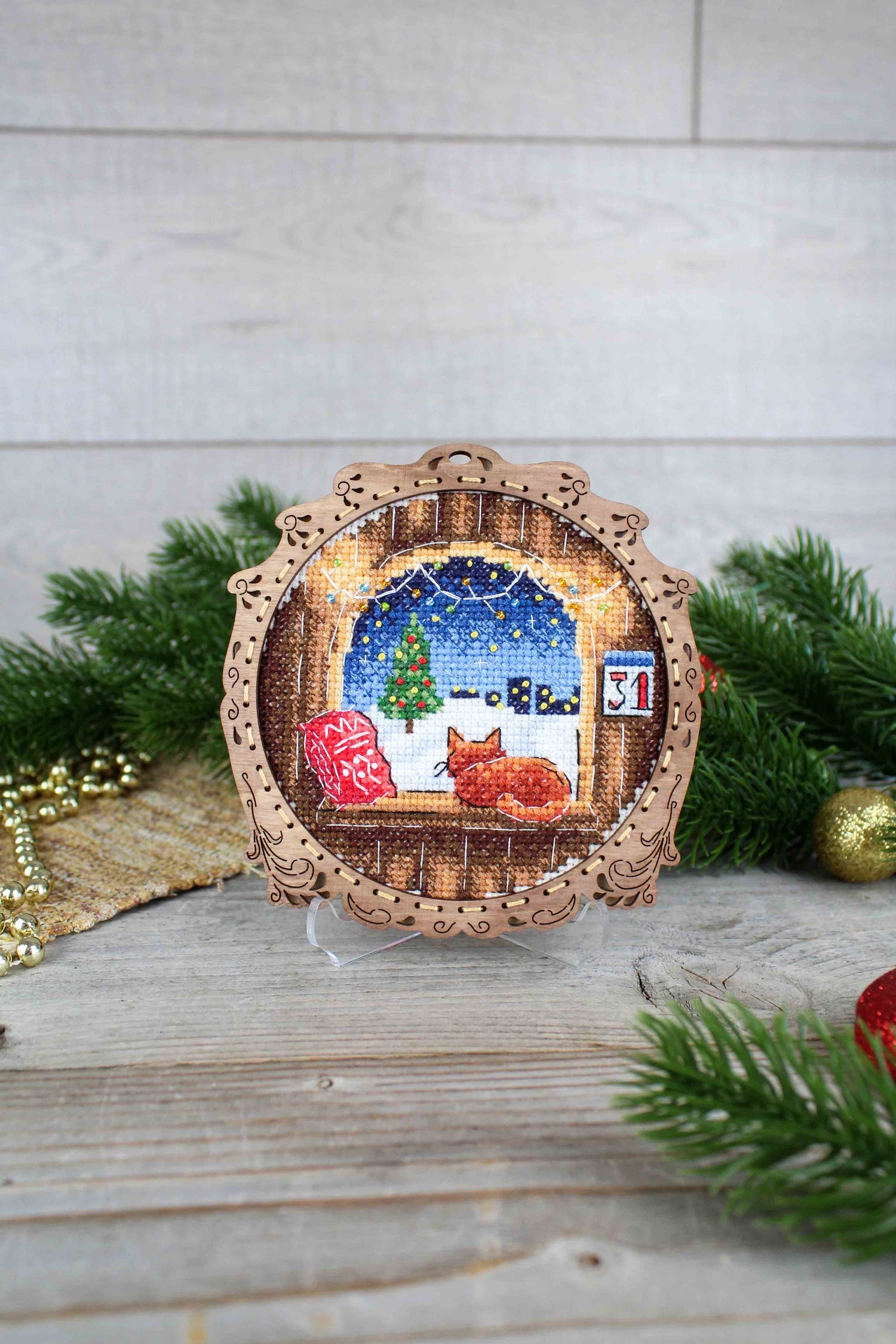 Kit de point de croix sur socle en bois "Miniature. L'hiver derrière la fenêtre" SO-119 MP Studia