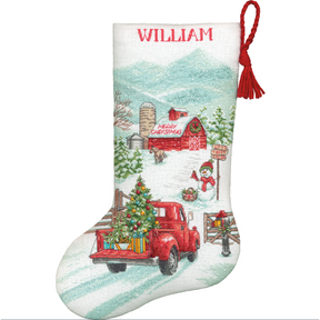 Ce motif au point de croix compté de Dimensions capture la magie de Noël dans une ferme avec un charmant camion rouge, une grange décorée, un bonhomme de neige et des détails de Noël. Ce bas est un merveilleux souvenir et facile à personnaliser avec l'alphabet inclus dans les instructions.