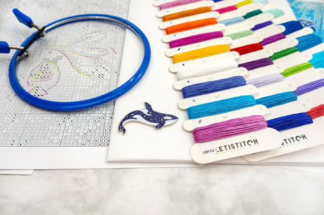 L9951 Mirage bleu – LetiStitch | Kit de point de croix Paysage de dauphins