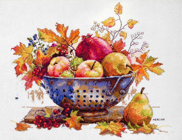 Profitez de la beauté de l'automne avec le kit de point de croix Merejka K-253 - Rosée de septembre . Ce kit haut de gamme vous permet de créer une représentation vibrante et détaillée d'une nature morte d'automne, parfaite pour décorer n'importe quel espace.