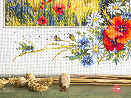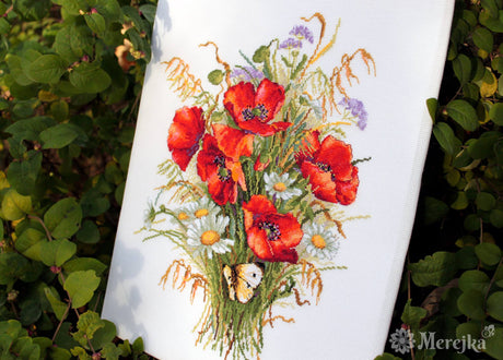 Kit de point de croix "Coquelicots et avoine" - Merejka K-128