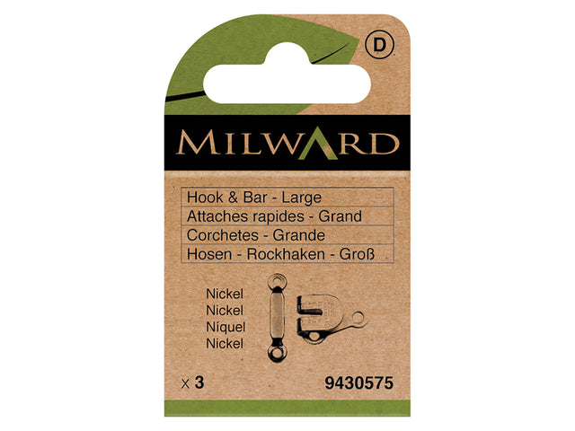 Les grands fermoirs pour jupe en nickel de Milward, dans leurs présentations pratiques de 14 mm x 17 mm, sont essentiels pour créer des fermetures sécurisées et discrètes sur une large gamme de vêtements. Parfaits pour les jupes, pantalons et autres accessoires vestimentaires, ces crochets offrent une forte tenue sans ajouter de volume inutile.