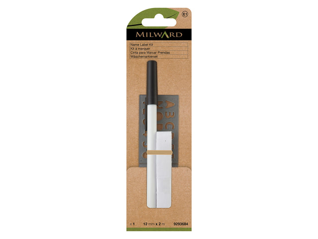 Description générale : Le kit de marquage des vêtements Milward est votre solution idéale pour étiqueter rapidement et de manière permanente les vêtements. Cet ensemble comprend un marqueur à encre permanente noire, une bande de ruban thermocollant et un modèle avec l'alphabet complet pour vous permettre de personnaliser vos vêtements avec facilité et précision.