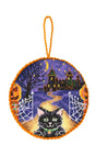 El kit de punto de cruz MP Studia SNV-906 – Halloween. Pinkeep es un pequeño y encantador adorno ideal para la temporada de Halloween. El diseño muestra un gatito negro con mirada brillante frente a un castillo embrujado, bajo la luz de la luna y rodeado de calabazas y telarañas. Perfecto para decorar tu hogar o crear un colgante artesanal con un toque misterioso y festivo.