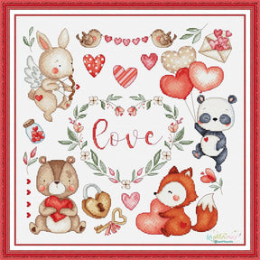 Des animaux, des cœurs et beaucoup d'amour dans ce schéma au point de croix compté des Petites Croix de Lucie. Le graphisme "Love" est parfait pour décorer une chambre d'enfant.