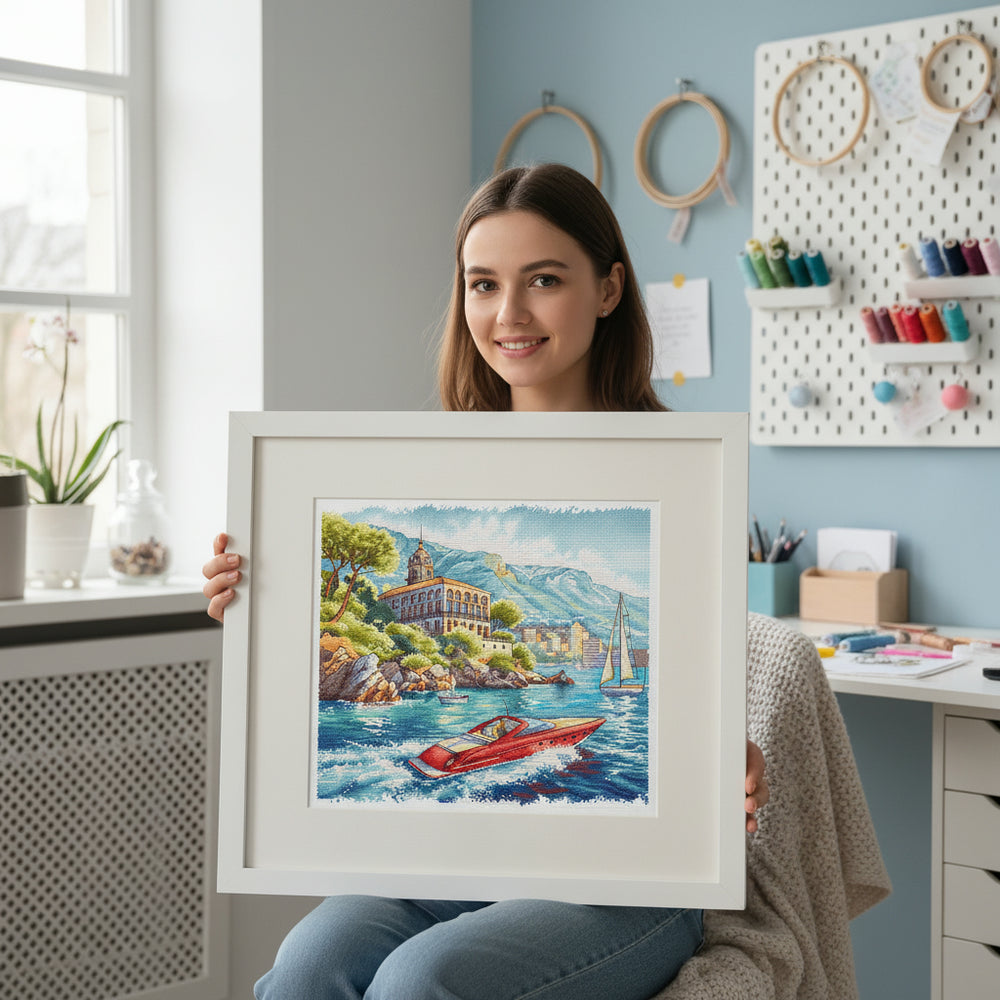 Laissez-vous emporter par la brise marine et le calme de la côte avec ce magnifique motif de point de croix : La Côte . Parfait pour les amoureux de paysages marins, ce kit AVA recrée en détail une scène tranquille, idéale pour coudre pendant les moments de détente.