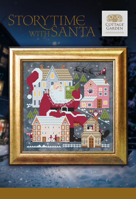 Heure du conte avec le Père Noël - Tableau de point de croix - Échantillons de jardin de chalet