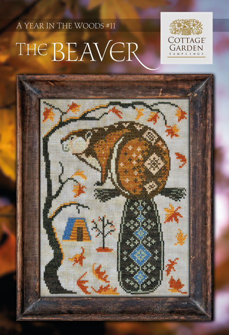 Le castor - Tableau de point de croix - Échantillons de jardin de chalet
