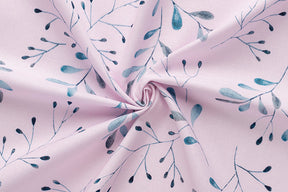Cette version du tissu "TIMELESS" de la marque Gütermann présente un fond dans un ton rose tendre, agrémenté de motifs de feuilles et de détails dans les tons bleus. La combinaison de couleurs et le motif délicat offrent un design frais et élégant.