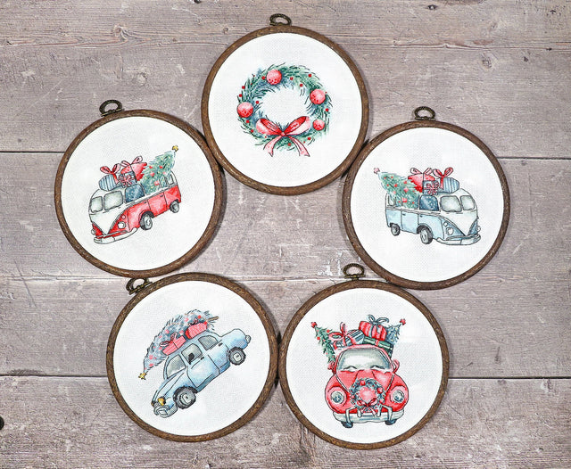 LETI 965 Retro Christmas Cars / 5 en 1 - Kit de point de croix LETISTITCH