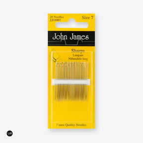 Paquet de 20 aiguilles longues n°7 pour couture à la main - John James JJ11007 : le choix parfait pour une couture efficace