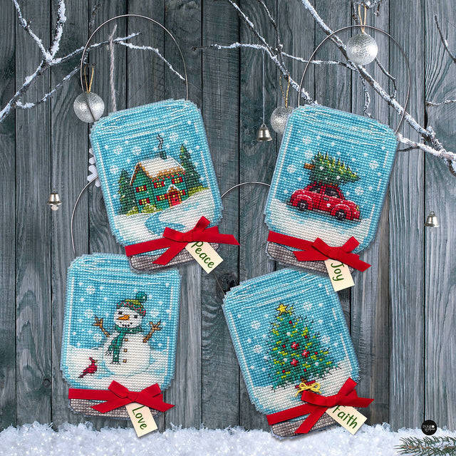 Ornements de Noël Mason Jar - 70-08997 Dimensions - Kit de point de croix est en rupture de stock et sera expédié dès qu’il sera de retour en stock.