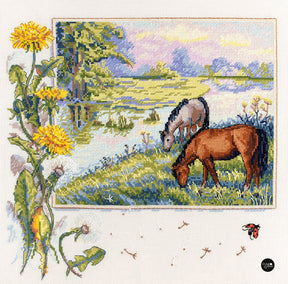 K-139 Kit de Punto de Cruz "Caballos en el Paisaje" de Merejka